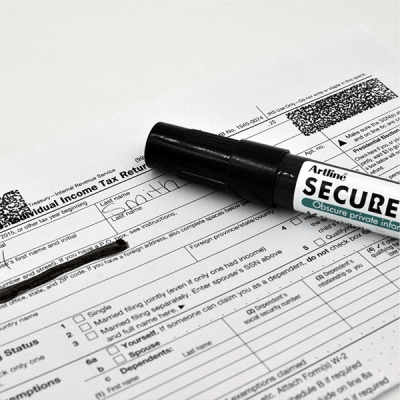 With a swift mark from our Artline Blackout Secure Marker, your sensitive information is easily concealed. This marker is perfect for work or home, ensuring you have all the tools you need to protect your identity. All information marked with this special ink cannot be easily read, scanned, or copied!