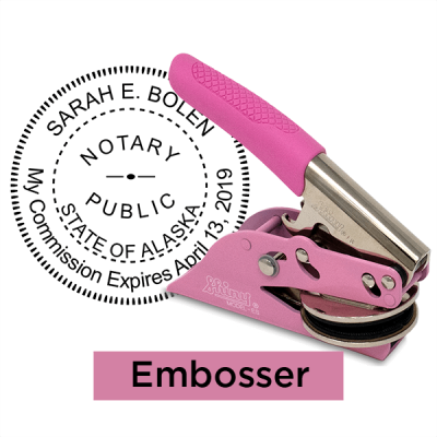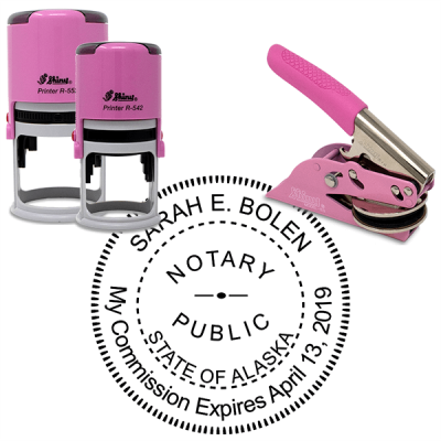 Are you a newly appointed or established Alaska Notary Public? Whether you are ordering the Pink Alaska Notary Round Seal for the first time or you have recently renewed your license, you can ensure that we provide only the most recent and state recommended Alaska notary supplies. This round design allows you to choose from self inking stamp or pocket seal