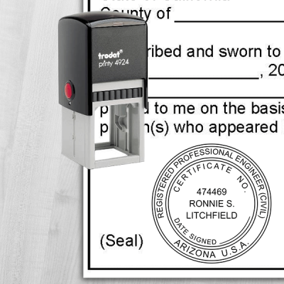 To order your State of Arizona Engineer Seal, simply fill in the fields provided above. This product will be customized to meet the current requirements for Professional Arizona Engineers. Add-ons and options vary by state.