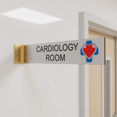 Corp Connect provides quality signs built for your building. This projection sign makes finding where you need to go quick and easy. Our line of corridor signs are made from quality materials that are sure to last.