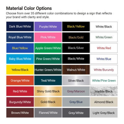 - Several sign material colors available