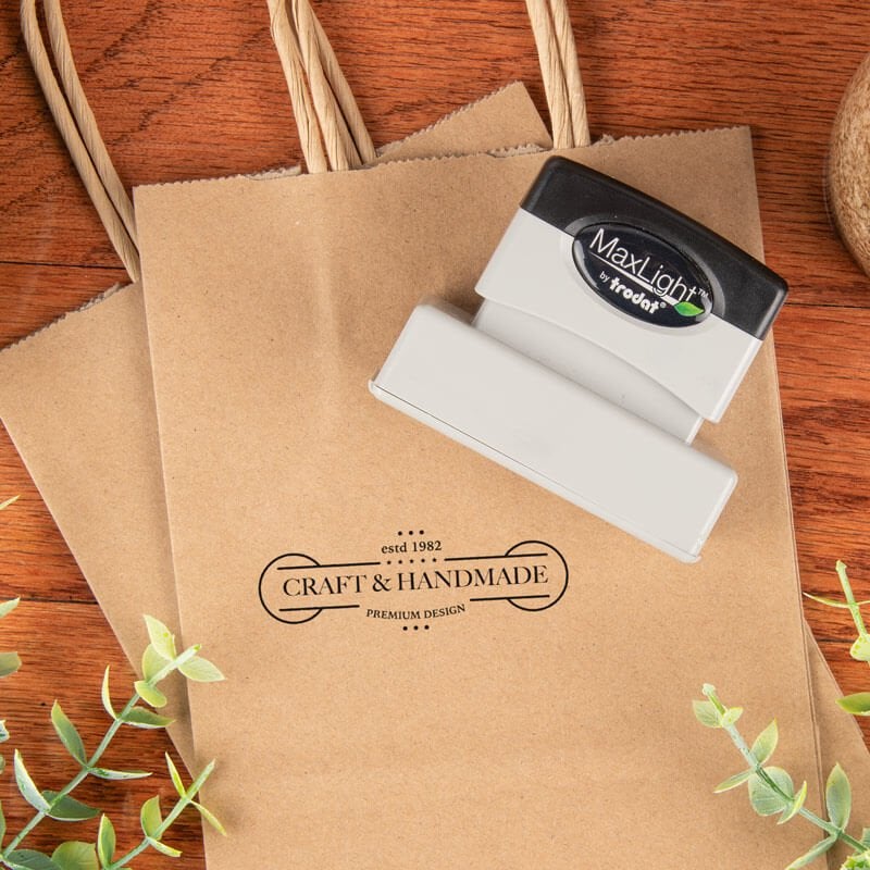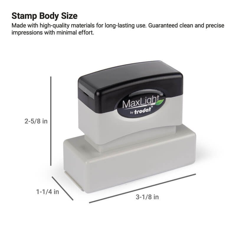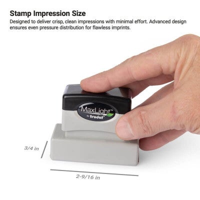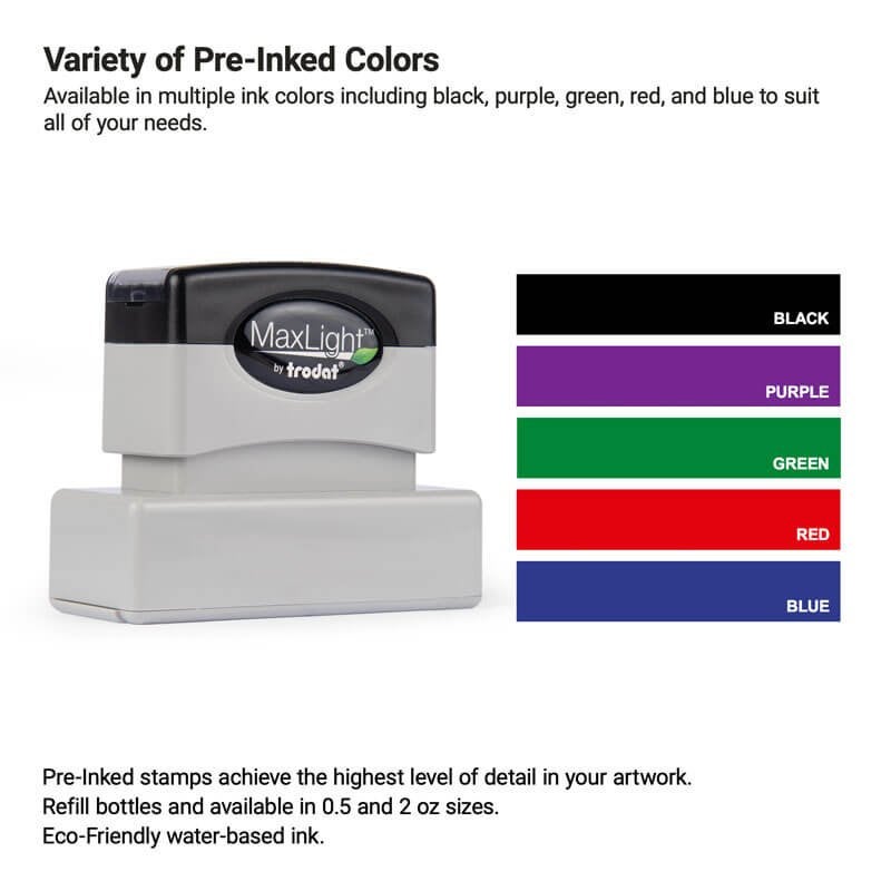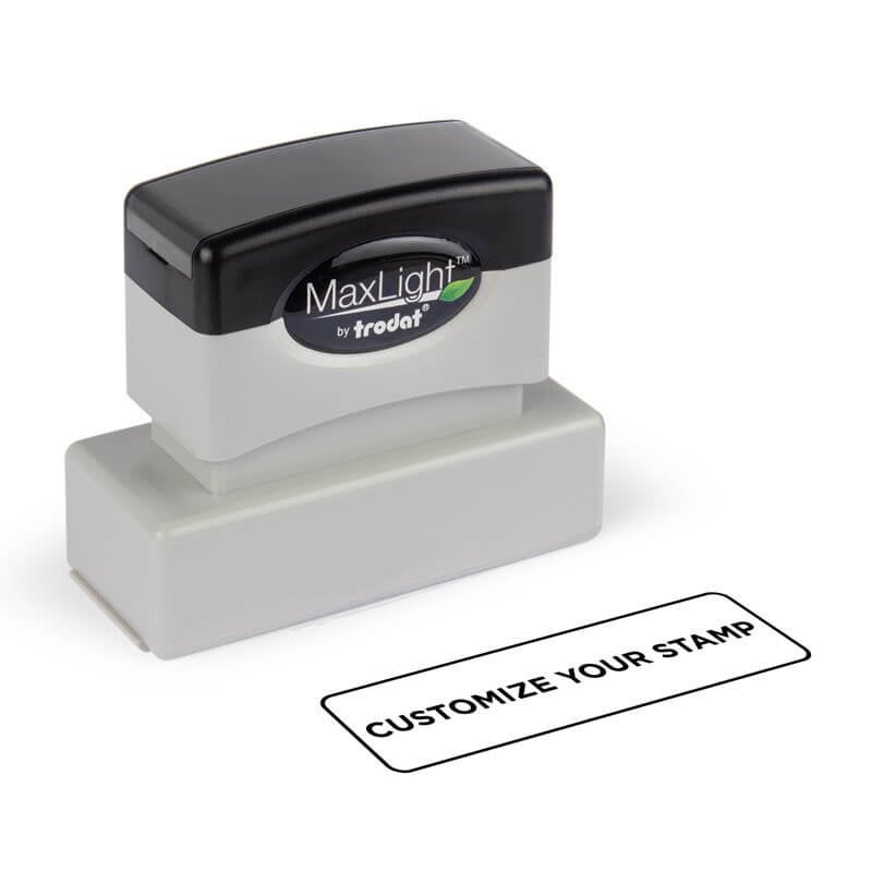 This MaxLight Custom Pre-Inked Stamp can be customized for business or personal use. Choose the text or image you want to make a precise design. Get expertly made stamps tailored to your needs here.