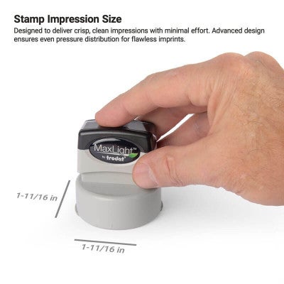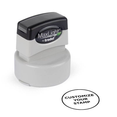 MaxLight round stamps come in a variety of sizes. This extra large impression can feature your company information in a unique design. You create the layout and look with our design wizard. Enjoy seeing precise details with every MAX-535S stamp impression.