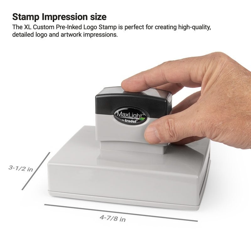 This is the largest ink contained stamp we can make! Great for logos or form details this measures approx 3.13" x 4.5" and is available in your choice of 5 ink colors.