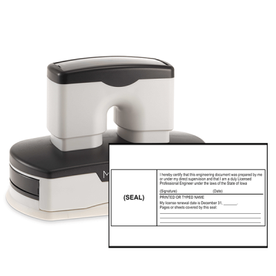To order your State of Iowa Engineer Document Stamp, simply fill in the fields provided above. This product will be customized to meet the current requirements for Professional Iowa Engineers. Add-ons and options vary by state.
