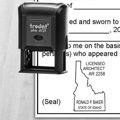 To order your State of Idaho Architect Seal, simply fill out the fields provided above for name, license number or other information required by The State of Idaho . All fields provided meet the requirements of your state. Additional options may include the choice of a stamp, additional ink, and more.