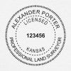 This State of Kansas Land Surveyor Seal has customization options including product type and size (choose from stamp or embosser), ink color, optional ink refill bottle, foil embossing stickers and more.