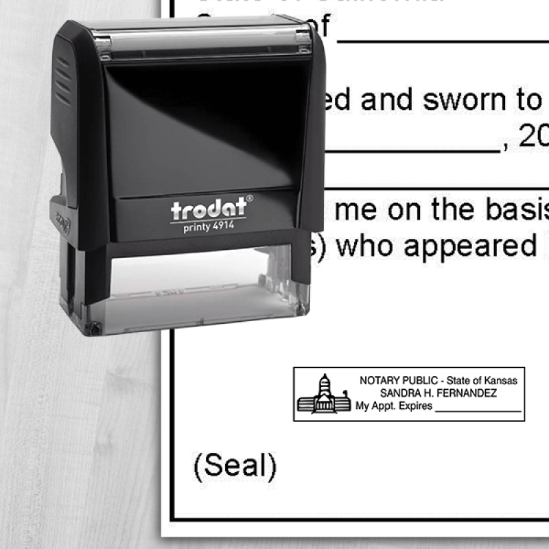 Whether you are ordering the Kansas Notary Rectangle Stamp for the first time or you have recently renewed your license, you can ensure that we provide only the most recent and state recommended Kansas notary supplies. We strive to carry only the latest state-approved designs.