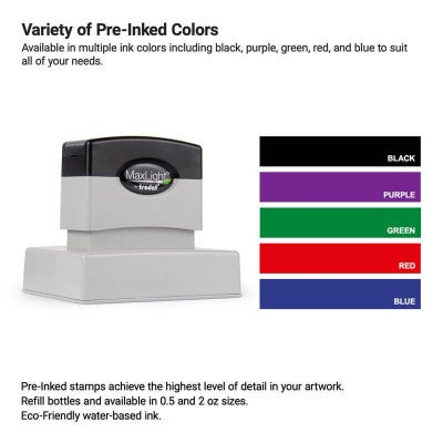 - High-quality pre-inked stamp lasts for thousands of impressions before needing additional ink