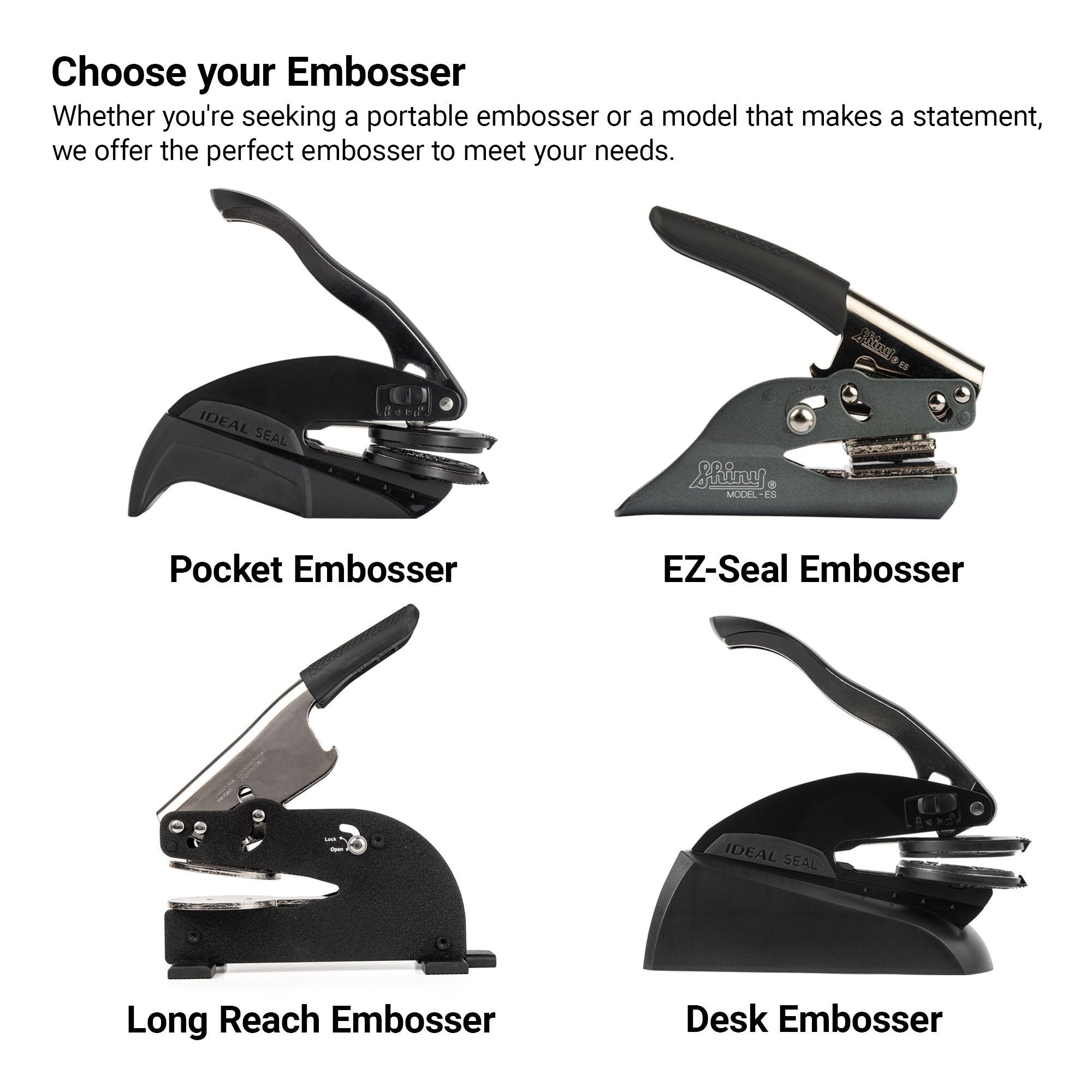 A customized large desk embosser is ideal for a wide variety of professions. Upload your personal or business' brand logo for marking official documents or stationery. Available in a variety of body styles and precisely engraved with your content, our custom embossers are perfect for your profession.