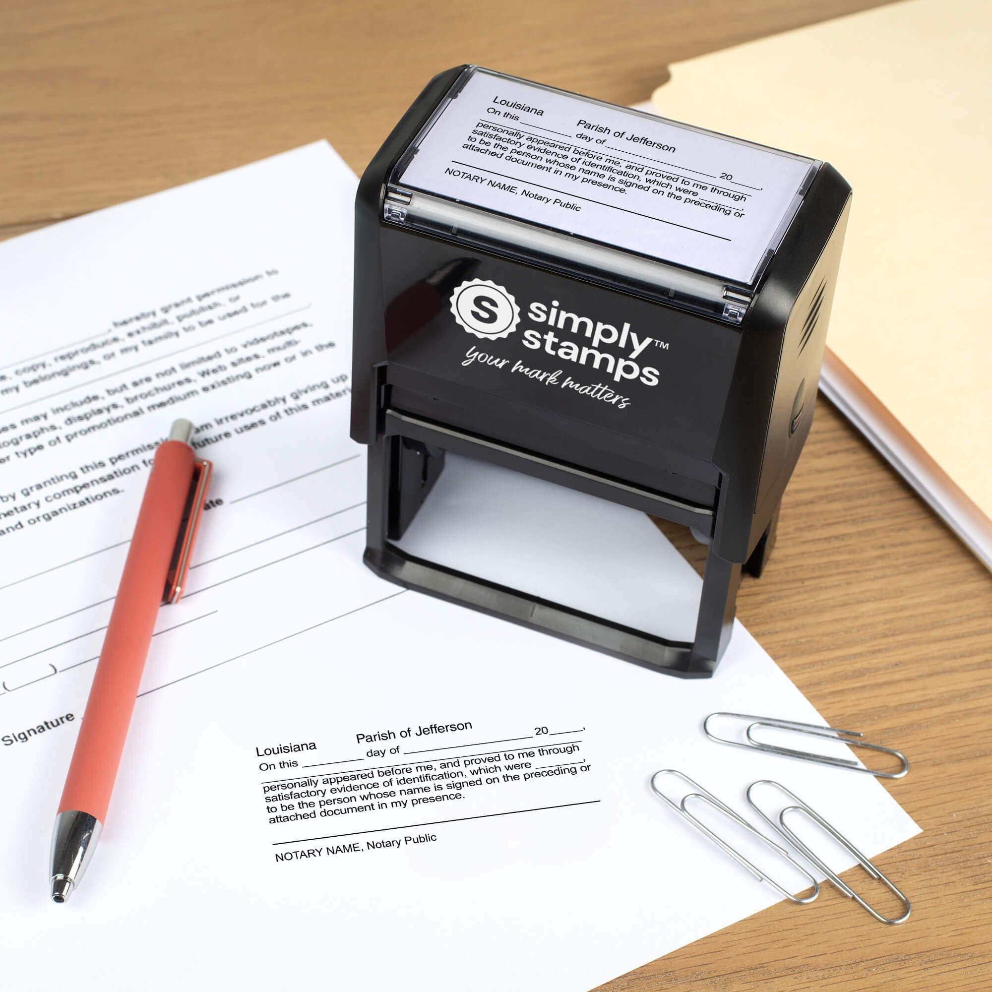 Our Louisiana Signature Witness Notary Stamp complies with the up-to-date Louisiana-required seal design. Order your Louisiana Signature Witness Notary Stamp as a traditional wood-handle, self-inking, or pre-inked stamp and enter the required information.