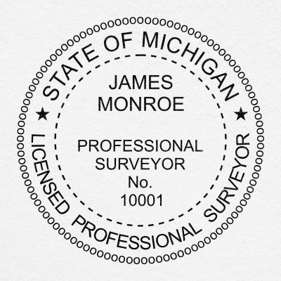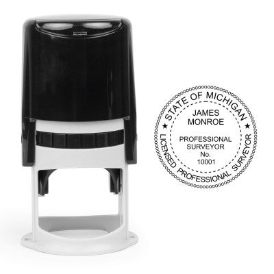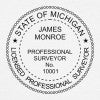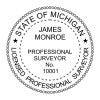This State of Michigan Surveyor Seal has customization options including product type and size (choose from stamp or embosser), ink color, foil embossing stickers and more.