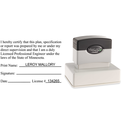 To order your State of Minnesota Engineer Seal Certification, simply fill in the fields provided above. This product will be customized to meet the current requirements for Professional Minnesota Engineers. Add-ons and options vary by state.