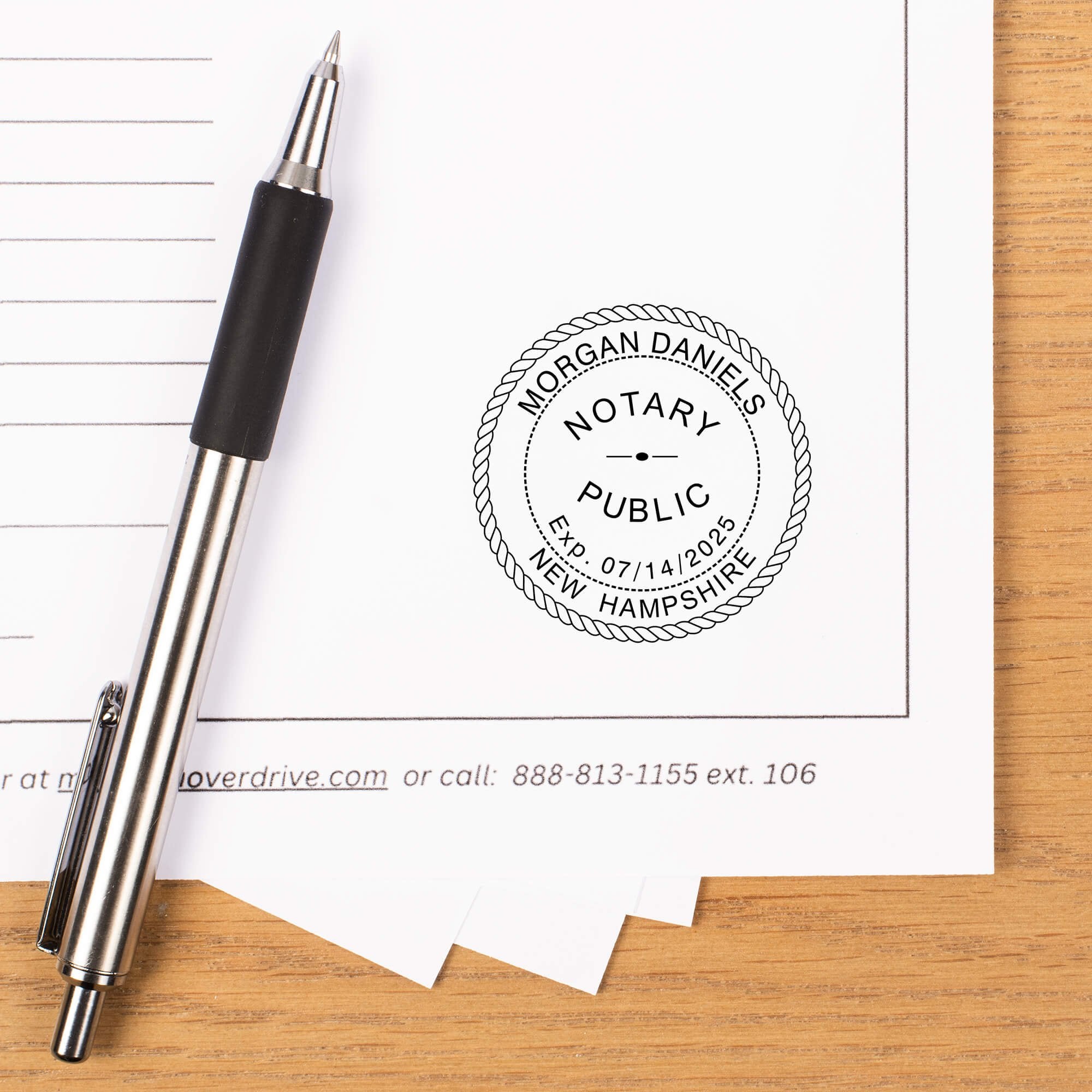 Round New Hampshire notary stamp available in or with the following options: