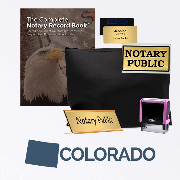 Find notary public supplies that meet the official requirements for the state of Colorado. Shop for Colorado notary stamps or complete notary kits that include notary public stamps, name plates and informational notary records books. Your order ships next business day!