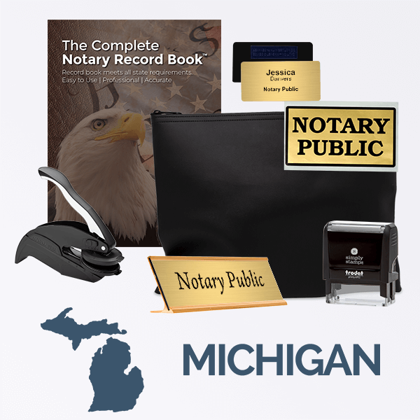 Find all of the official supplies you need as a Michigan public notary. Choose from professional Michigan notary supply kits, stamps and seals. Your MI state notary supplies ship next business day!