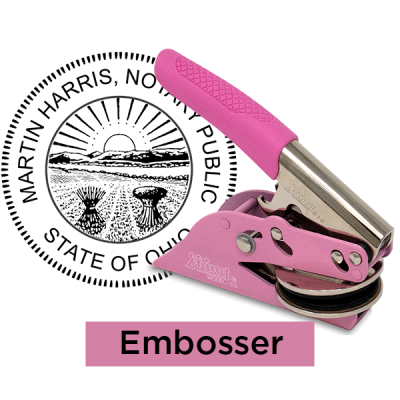 Our Ohio Pink Round Notary Seal complies with the updated Ohio-approved stamp seal design. Order your Ohio Pink Round Notary Seal as either a stamp or embosser and enter the required information to personalize your seal.