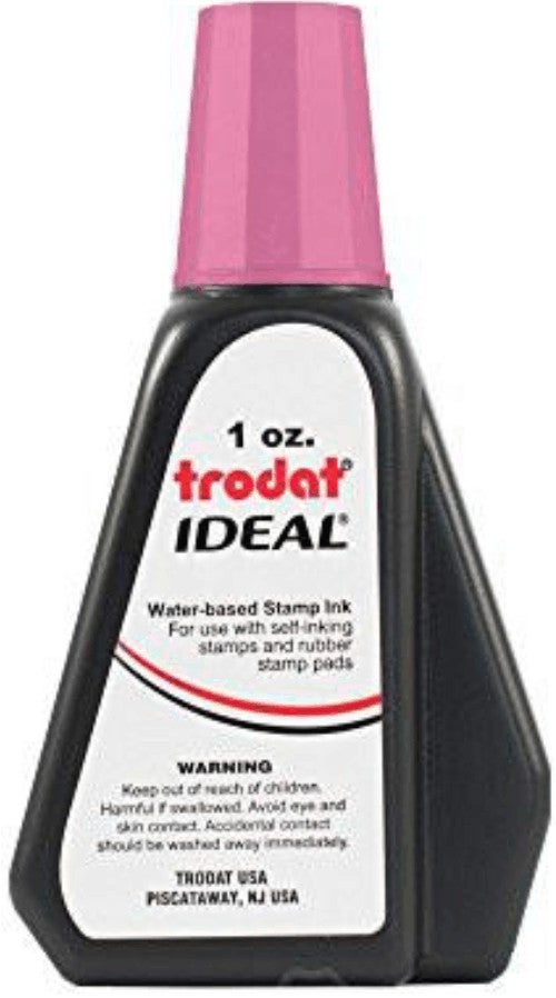 Sadly but truly ink runs out. Is your self-inking stamp drying up or not leaving the best impressions that a splash of ink couldn't solve? Order your PINK Trodat (Ideal) 1 oz ink refill bottle online today!