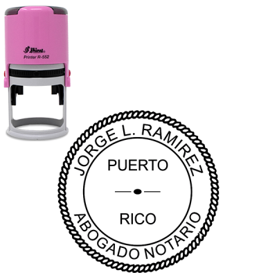 Our Puerto Rico Pink Round Notary Seal complies with the updated Puerto Rico-approved stamp seal design. Order your Puerto Rico Pink Round Notary Seal as either a stamp or embosser and enter the required information to personalize your seal.