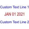 - Up to two lines of custom text (displayed above and below date)