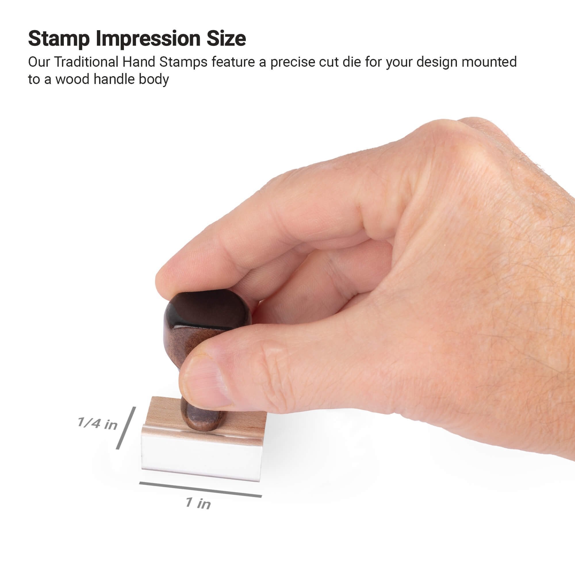 Design your own custom 1/4" x 1" Traditional Hand Stamp from Corp Connect. Perfect for personal or professional use, you can make a rubber stamp with custom text and images to fit you or your business' needs.