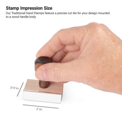 Design your own custom 3/4" x 2" Traditional Hand Stamp from Corp Connect. Perfect for personal or professional use, you can make a rubber stamp with custom text and images to fit you or your business' needs.