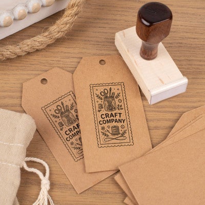 Design your own custom 2" x 1" Traditional Hand Stamp from Corp Connect. Perfect for personal or professional use, you can make a rubber stamp with custom text and images to fit you or your business' needs.