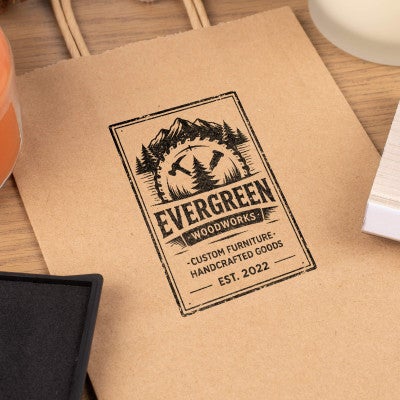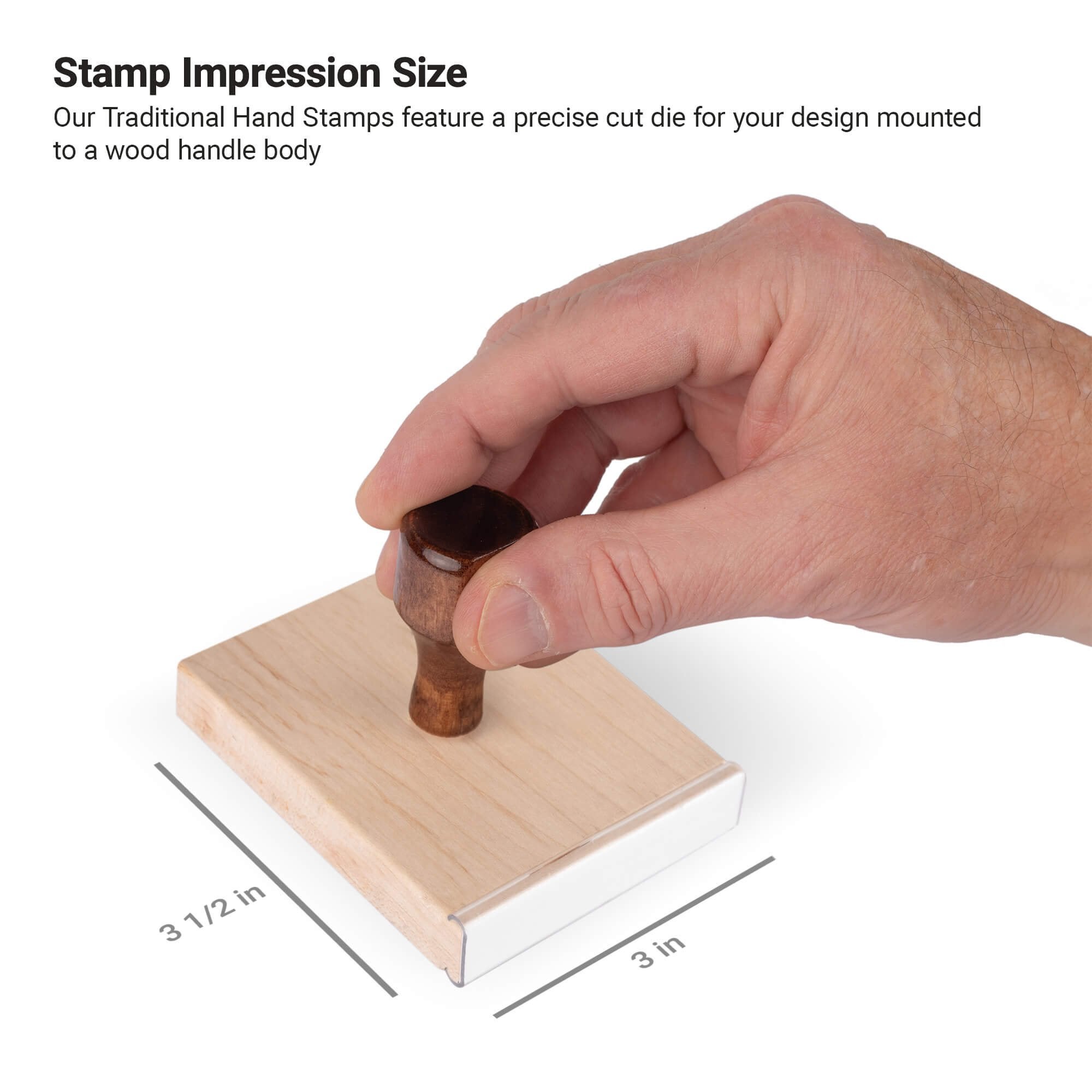 Design your own custom 3 1/2" x 3" Traditional Hand Stamp from Corp Connect. Perfect for personal or professional use, you can make a rubber stamp with custom text and images to fit you or your business' needs.