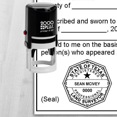 This State of Texas Land Surveyor Seal has customization options including product type and size (choose from stamp or embosser), ink color, optional ink refill bottle, foil embossing stickers and more.