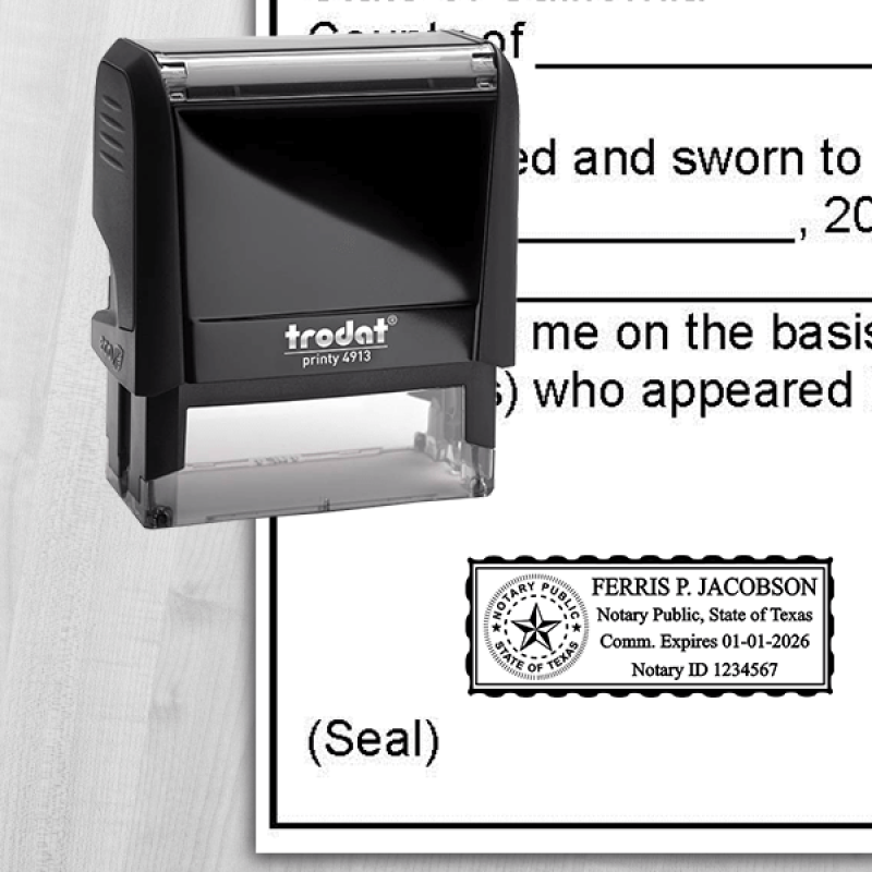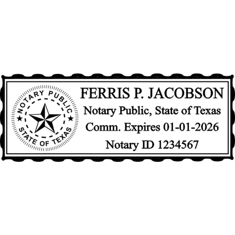Our Texas Rectangle Notary Stamp complies with the updated Texas-approved stamp seal design. Order your Texas Rectangle Notary Stamp in your preferred style and enter the required information to personalize your impression.