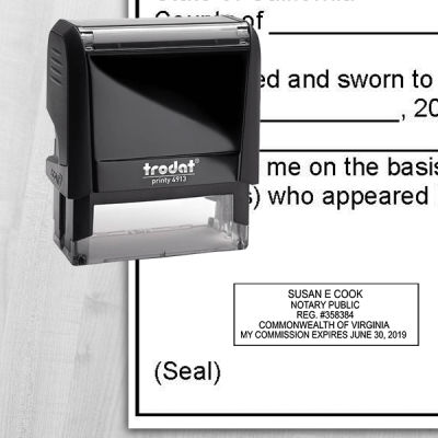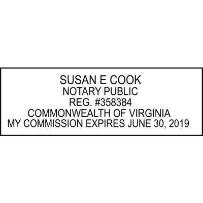 Our Virginia Rectangle Notary Stamp complies with the updated Virginia-approved stamp seal design. Order your Virginia Rectangle Notary Stamp as either a self-inking, pre-inked, or wood handled stamp and enter the required information to personalize your impressions.