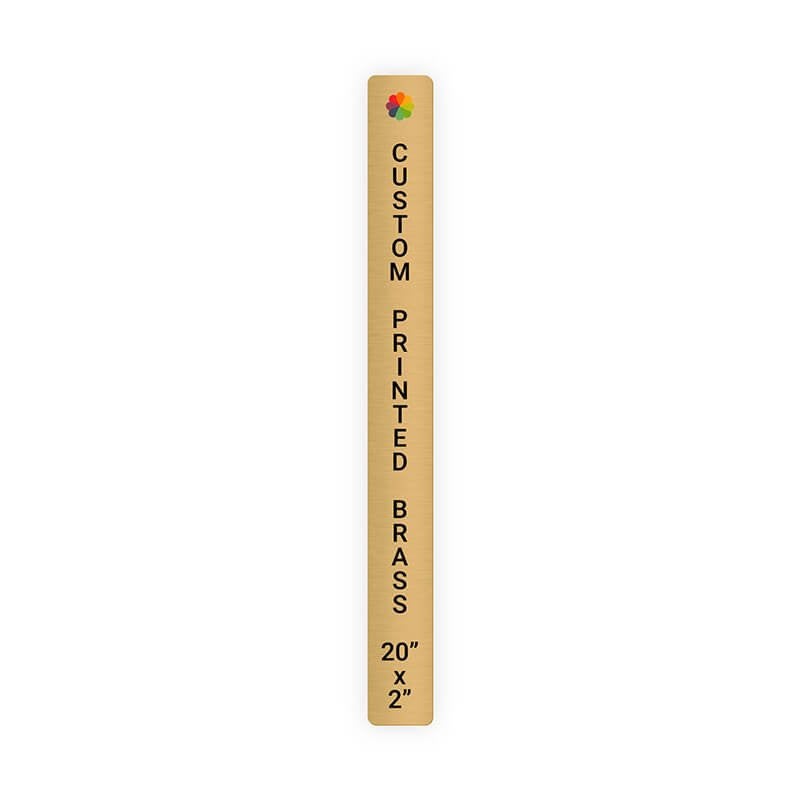- Printed Brass Uses: Printed brass is commonly used for company logo signs, award plaques, and directional signage. Create printed brass signs for when you need the elegant look of brass while keeping up with company colors.