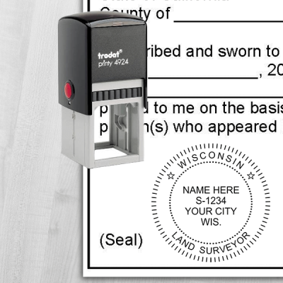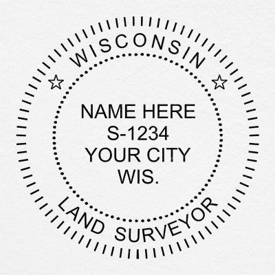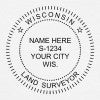 This State of Wisconsin Land Surveyor Seal has customization options including product type and size (choose from stamp or embosser), ink color, foil embossing stickers and more.