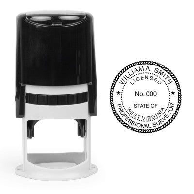 This State of West Virginia Surveyor Seal has customization options including product type and size (choose from stamp or embosser), ink color, foil embossing stickers and more.