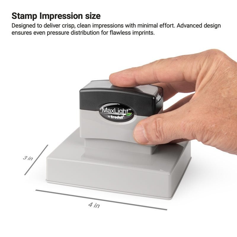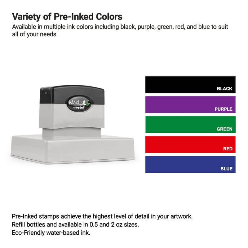 - High-quality pre-inked stamp lasts for thousands of impressions before needing additional ink