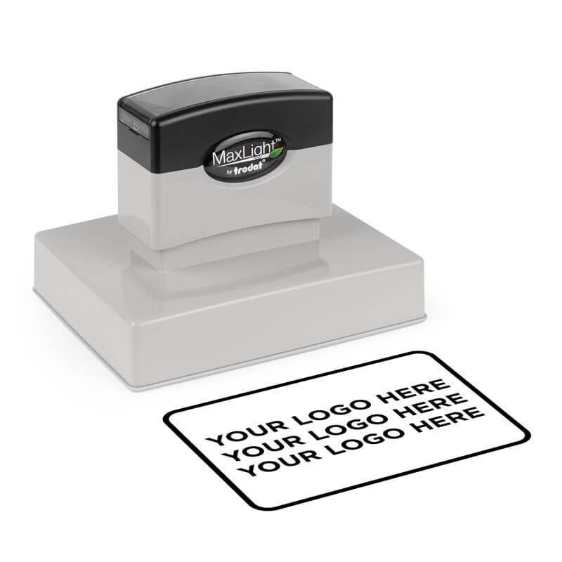 Our extra large rectangular custom logo stamp is the perfect stamp to effortlessly and economically promote your organization and increase your branding efforts. First impressions are key! Customize your marketing collateral with a beautiful custom logo stamp. Whether you want a unique design that is ideal for stamping on receipts, paper menus, bags, tags, boxes, carry out containers, or flyers - you're only limited by your own creativity! Our pre-inked logo stamp encourages the promotion of your personalized logo by including: