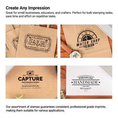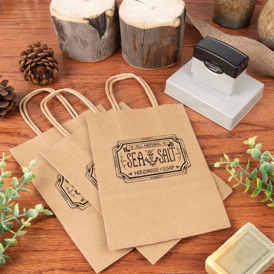 Our extra large rectangular custom logo stamp is the perfect stamp to effortlessly and economically promote your organization and increase your branding efforts. First impressions are key! Customize your marketing collateral with a beautiful custom logo stamp. Whether you want a unique design that is ideal for stamping on receipts, paper menus, bags, tags, boxes, carry out containers, or flyers - you're only limited by your own creativity! Our pre-inked logo stamp encourages the promotion of your personalized logo by including: