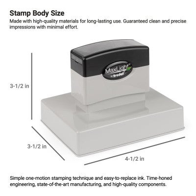 - High-quality pre-inked stamp lasts for thousands of impressions before needing additional ink