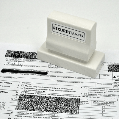 Looking for a better way to protect your private information? Our Large Xstamper Secure Mark Out Stamp uses a special ink that covers the information you need covered. This permanent stamp impression marks out yout information so it cannot be easily copied or scanned.