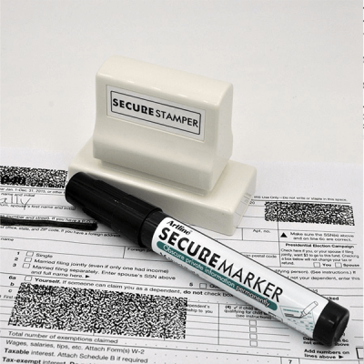 Shredding documents taking too much time? The 2 13/16" x 1" Xstamper Secure Stamp & Redacting Marker Pen Kit is a time saver! The stamp and marker use a special black ink that helps cover personal information from prying eyes. Our kit keeps your private information safe!